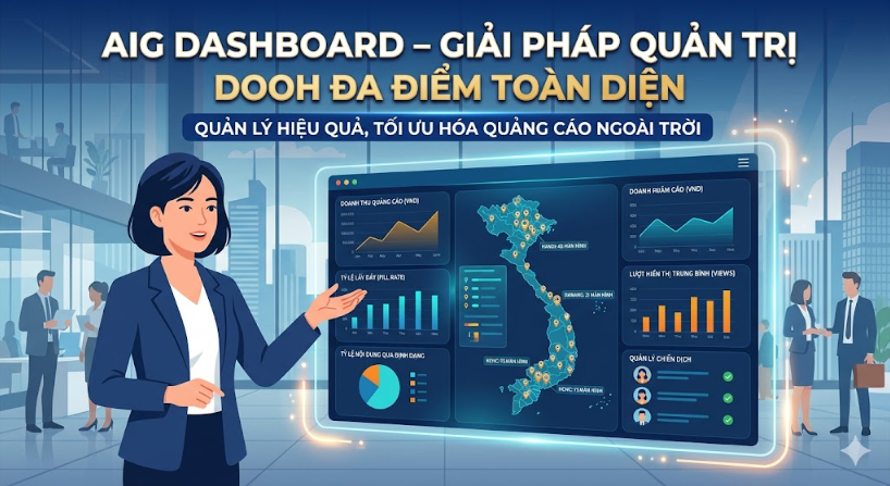 Hiểu rõ điều đó, AIG phát triển AIG Multi-Site LED Dashboard – một nền tảng quản lý tập trung, giúp doanh nghiệp kiểm soát toàn bộ hệ thống màn hình DOOH theo thời gian thực, từ chi phí, doanh thu đến hiệu suất khai thác.