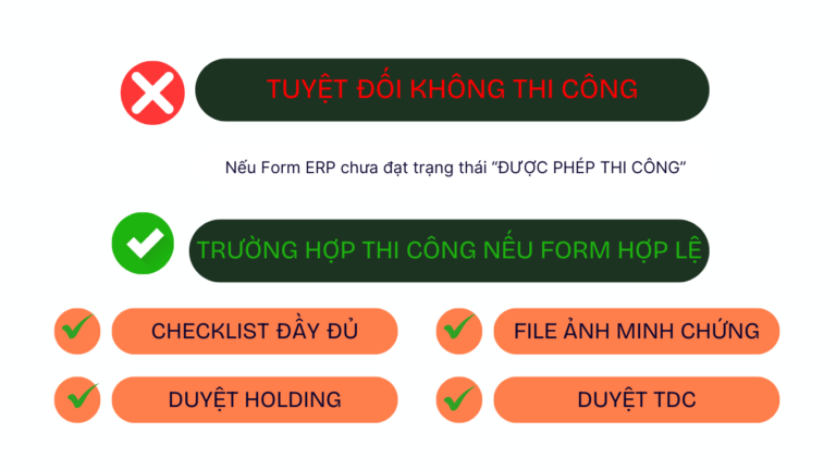 nếu Form ERP chưa đạt trạng thái “ĐƯỢC PHÉP THI CÔNG”