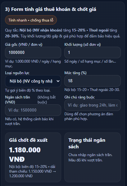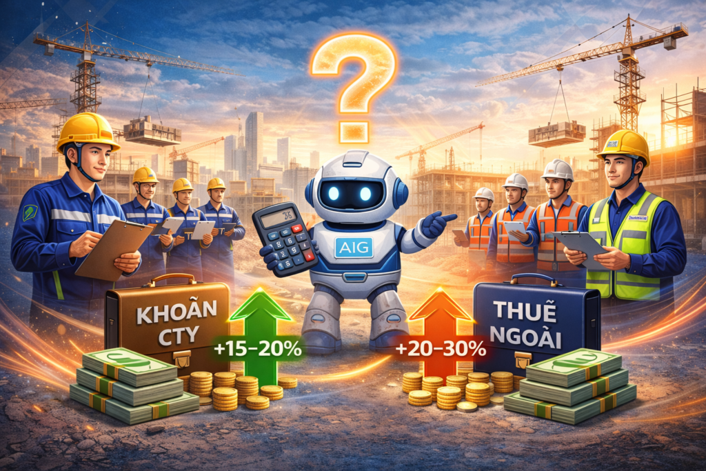 Thuê ngoài: Khi công ty không đủ khả năng đáp ứng, việc thuê ngoài là lựa chọn hợp lý. Tuy nhiên, chi phí thuê ngoài sẽ cao hơn, với mức tăng 20–30% so với giá nhân công hiện có. Việc này đảm bảo công việc được thực hiện kịp thời, đặc biệt trong các tình huống khẩn cấp hoặc yêu cầu tiến độ gấp.