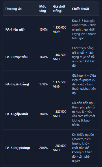 Đưa 2–3 báo giá cạnh tranh