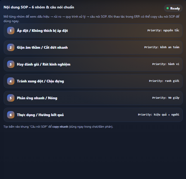 MENU 6 NHÓM KIỂU TƯ DUY & HÀNH VI (SOP ỨNG XỬ)