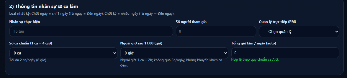 Khác với các biểu mẫu nhật ký truyền thống mang tính hình thức, NKCT AIG v2.1 được thiết kế như một hồ sơ dữ liệu sống, phản ánh đầy đủ: