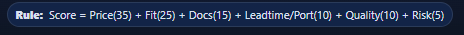 Risk & Quality Index: độ ổn định, lịch sử giao hàng, điểm chất lượng